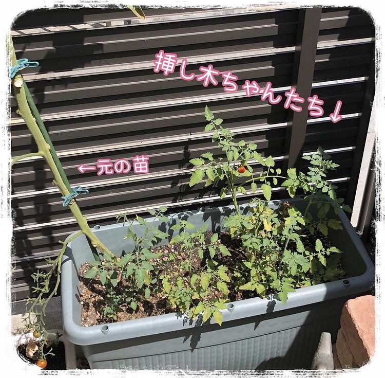 剪定したミニトマトの茎を土にぶっ刺しておくと